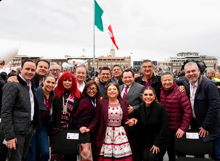 11-enero-2025 El gobernador de Tamaulipas, Américo Villarreal, expresó su respaldo a la presidenta Claudia Sheinbaum al conmemorar los primeros 100 días de su administración en un evento multitudinario celebrado en el Zócalo de la Ciudad de México. Acompañado por gobernadores, gobernadoras y otros funcionarios, Villarreal destacó la relevancia del trabajo conjunto entre los gobiernos estatales
