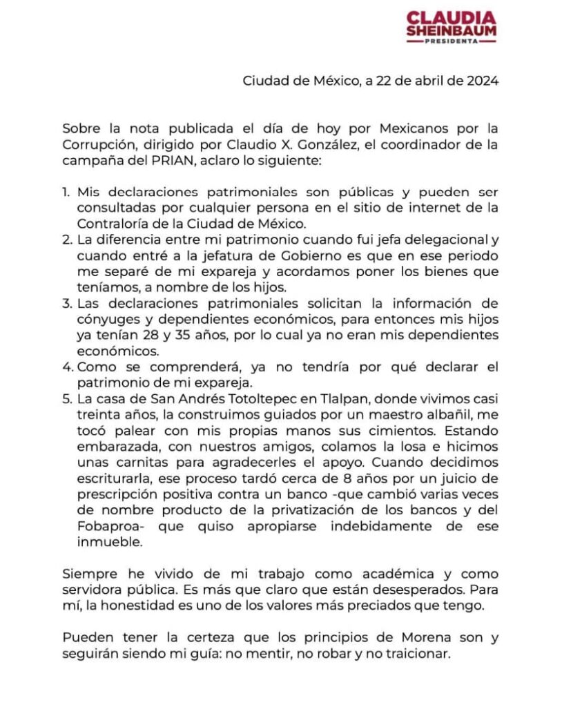 Claudia Sheinbaum responde a Mexicanos contra Corrupción – Defiende su postura ante la polémica. Dejar un comentario / Mexico, Política / Por Enrique Muñoz Related Posts:Hero Banner 1Trump declara terroristas a los cárteles mexicanos: ImpactoClaudia Sheinbaum se Proclama Ganadora del Tercer…Shakira suma nuevas fechas en México para su gira mundial"Déjenlo descansar": Sheinbaum defiende la…Sheinbaum reafirma postura ante España: "Vamos a…Te puede interesar: Inspectores de Sanidad Regresarán Gradualmente a Empacadoras de Aguacate y Mango en Michoacán: Anuncia EEUU