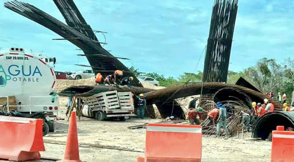 En la mañana de este martes, una sección de un puente en construcción del Tren Maya colapsó en Chetumal, debido a las fuertes lluvias causadas por el Potencial Ciclón Tropical Uno. El incidente tuvo lugar en el Tramo 7 de esta megaobra, a cargo de la Secretaría de la Defensa Nacional (Sedena). Según reportes preliminares de ADN40, la pesada estructura aplastó una camioneta, y hasta el momento, se desconoce si hay heridos.