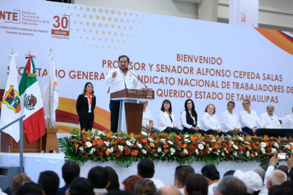 Américo Villarreal destaca humanismo y recibe respaldo del magisterio de Tamaulipas