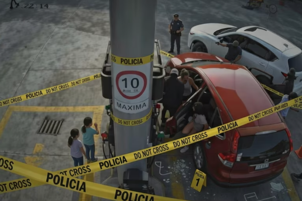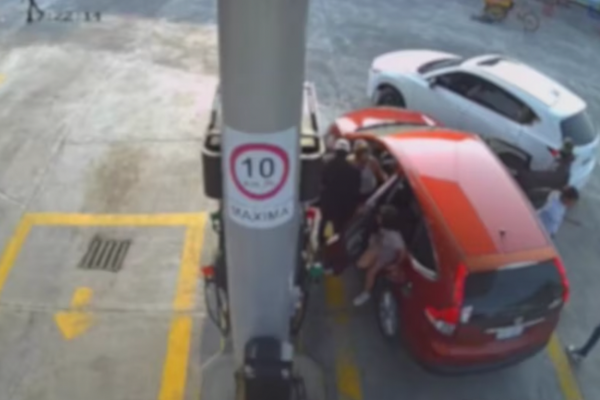 En el material se observa cómo los hombres armados interceptan a la familia en la gasolinera. Luego obligan a todos a bajar del vehículo mientras mantienen las armas apuntando.