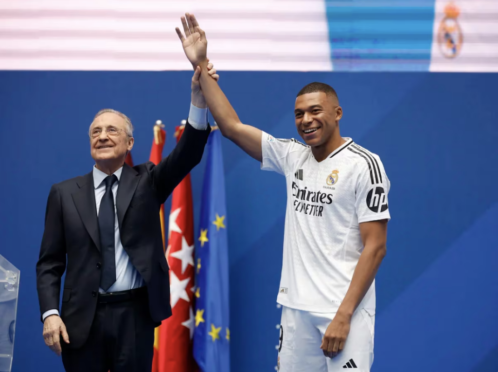 El punto culminante del evento fue la aparición de Mbappé en el césped del Bernabéu, vestido con la camiseta blanca del Real Madrid. Ante los gritos de “Mbappé, Mbappé” de los aficionados, el delantero avanzó hasta unirse a Florentino Pérez, quien le dio una calurosa bienvenida: “Kylian, bienvenido a tu casa, bienvenido al Real Madrid”.