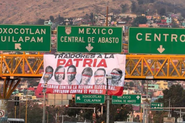 La polémica por la Reforma Electoral alcanzó un nuevo nivel en Oaxaca, donde la ciudad amaneció este 12 de marzo con mantas que exhibían a diputados señalados por votar contra la iniciativa impulsada por la presidenta Claudia Sheinbaum. Las lonas fueron colocadas en varios puentes y vialidades transitadas, mostrando los rostros y nombres de legisladores acusados de frenar la propuesta, lo que generó sorpresa entre conductores y peatones que circulaban por la capital del estado.