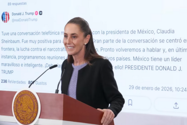 Horas antes, la mandataria había informado a través de su cuenta oficial de X que sostuvo una llamada telefónica con Donald Trump, la cual describió como productiva y cordial. Sheinbaum explicó que la conversación tuvo una duración aproximada de 40 minutos, tiempo en el que se abordaron diversos asuntos de interés común. Entre los principales temas estuvieron la relación bilateral, los tratados comerciales vigentes y los mecanismos de cooperación entre ambos países. En materia de seguridad, la presidenta aseguró que ambas partes coincidieron en que los acuerdos “van muy bien”. Respecto al comercio, señaló que continúan las pláticas relacionadas con el T-MEC, con el objetivo de seguir avanzando, aunque precisó que por el momento no pueden darse a conocer más detalles.